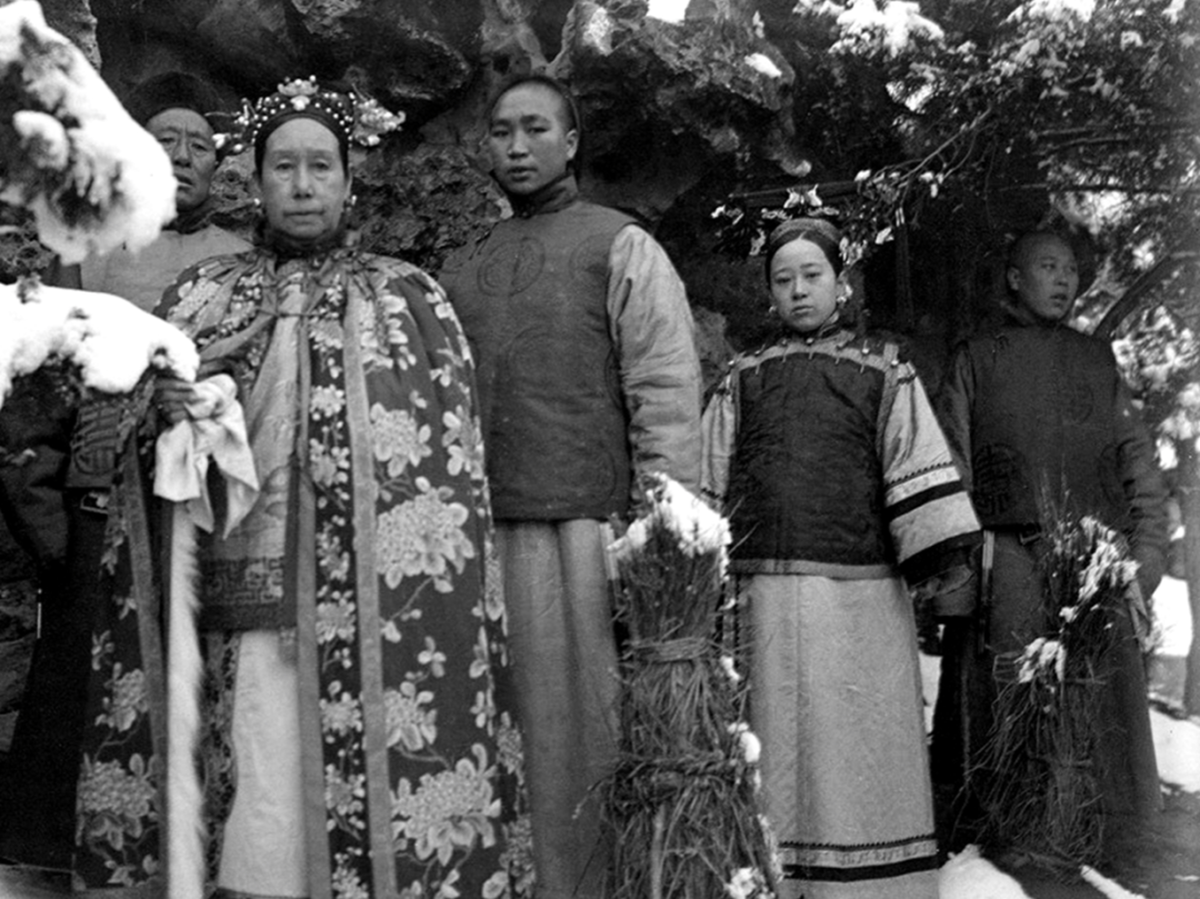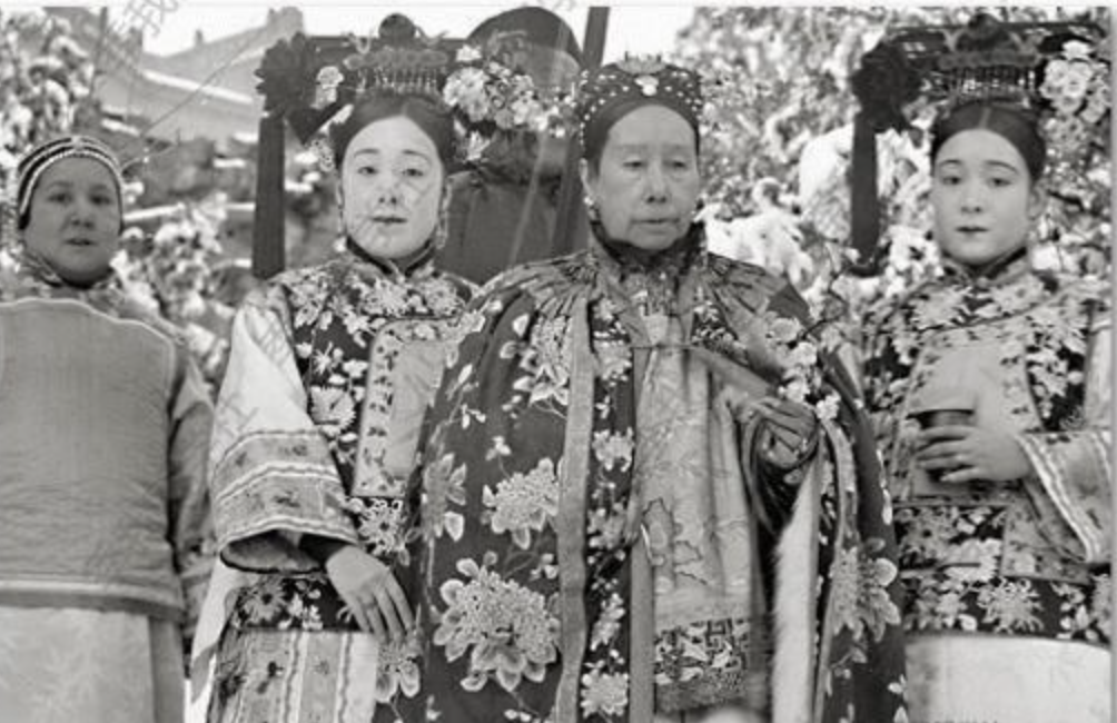 左一是崔玉贵,左二是慈禧,右二是庆亲王奕劻的第四个女儿,人称四格格