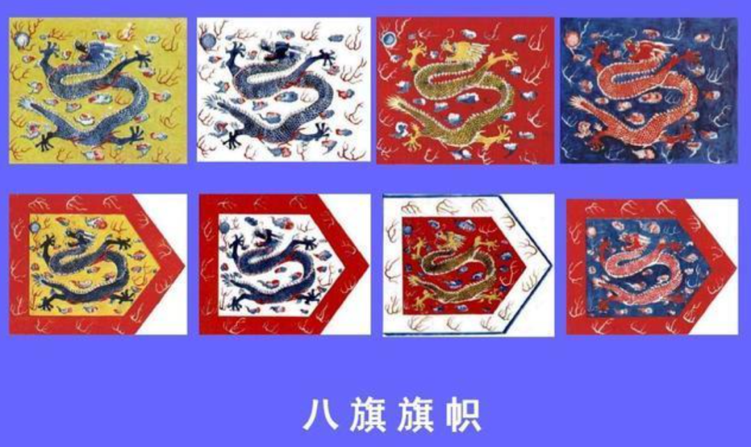 1615年,在打天下创业阶段的努尔哈赤,将自己的部队和人口,为了方便管理,分为八大部分,当时不叫“八大部分”,而叫“八旗”,它们是镶黄旗、正黄旗、正白旗、正红旗、镶白旗、镶红旗、正蓝旗、镶蓝旗,一个八个旗,叫“满清八旗”。