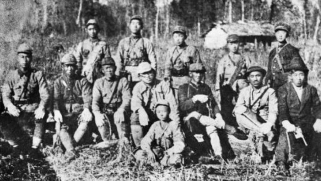 东北抗日联军,前排左四,是金日成