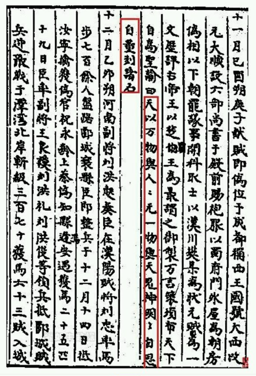 意思是说,张献忠认为,全天下的人,都是王八蛋,没有一个是好人,都是刻薄忘恩之辈,都是可杀之人,所以,他在四川大开杀戒,杀杀杀杀杀杀杀。