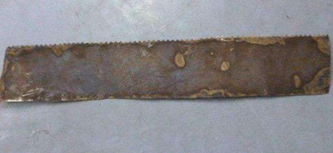 下面这个,是我国出土的,周朝时代的铜锯: