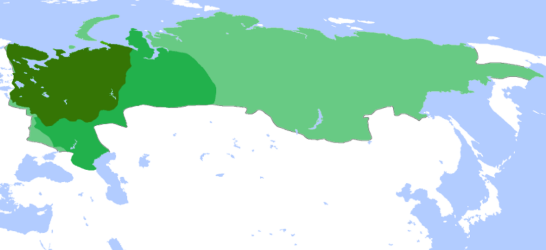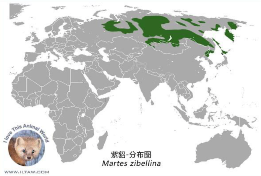 紫貂在北亚的分布图,这幅图较好地解释了,俄国人为什么要吞并广阔的北亚