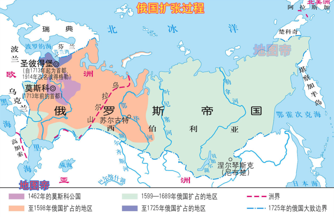 原因之二:事实上在过去这几百年间,欧洲人一直都在扩张,西班牙、葡萄牙、荷兰、英国、法国……都在扩张,并不仅仅是俄国人在扩张,只不过,这些西欧国家航海技术发达,出海方便,所以他们向海上扩张,而俄罗斯在古代,没有出海口,只有北冰洋,长期结冰,且要绕个巨大的弯,航海极其不方便,所以,俄国人被迫向大陆扩张。