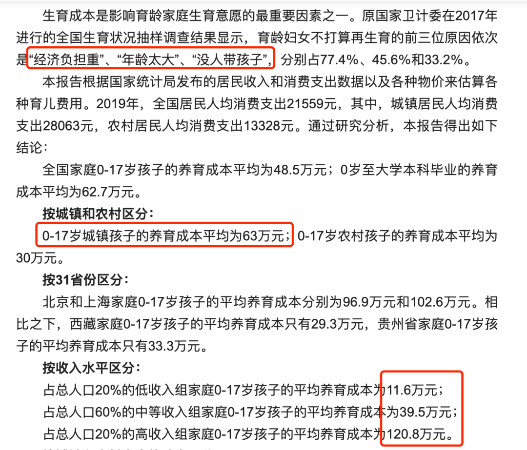 《中国生育成本报告》指出:养个孩子要花63万,北京上海更是高达百万。