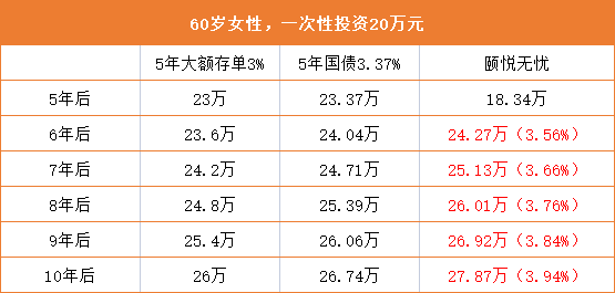 如果只存5年,国债完胜,颐悦无忧本金还没回来呢;