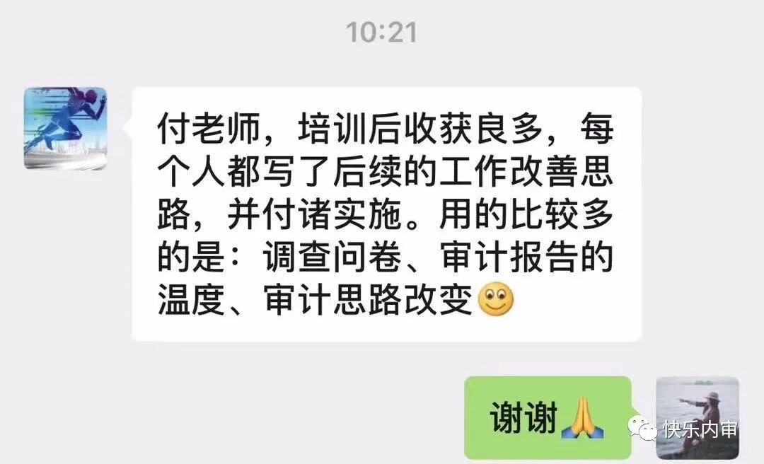 很多伙伴这样说:“付老师,您让我更加坚定了做内审的勇气”;