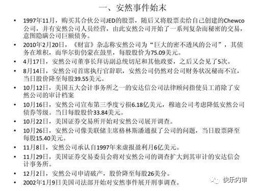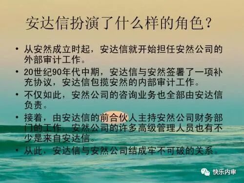 为安然公司连续出具长达16 年审计报告的安达信公司,安达信环球(Andersen World wide)集团的美国分部——安达信会计师事务所(Arthur Andersen LLP)宣布,从即日起放弃在美国的全部审计业务,正式退出其从事了89年的审计行业。五大(普华永道、安永、毕马威、德勤、安达信)变化为如今的四大(普华永道、安永、毕马威、德勤)。