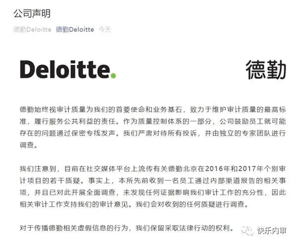针对德勤员工内部举报事件,证监会表示正在核查,同时要求德勤自查。