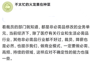 虽然很多人在大厂,但是你真知道对方具体做啥么,可能每天也就是打酱油,在边缘化部门也是度日如年。你要有身边的朋友可以问问,他们为啥被裁,最近我也一直看一些公司在裁员,主要就是不盈利了,人员过多节省成本,真赚钱的部门还在招聘人。你进到公司就要评估自己做的业务线,要是一直亏损,这个就要考虑后路了。