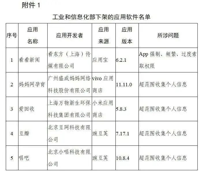 12 月 9 日早间,工信部公开通报了此前存在“侵害用户权益”,且未按要求完成整改的 App。工信部通报称,11 月 3 日针对 App 超范围、高频次索取权限,非服务场景所必需收集用户个人信息,欺骗误导用户下载等违规行为进行检查,并对未按要求完成整改的 App 进行公开通报。截至目前,尚有 5 款 App 未按工信部要求完成整改;各通信管理局积极开展 APP 技术检测,截至目前尚有 101 款 App 仍未完成整改。依据《个人信息保护法》《网络安全法》等相关法律要求,对爱回收、豆瓣、唱吧等 106 款 App 进行了下架处理。