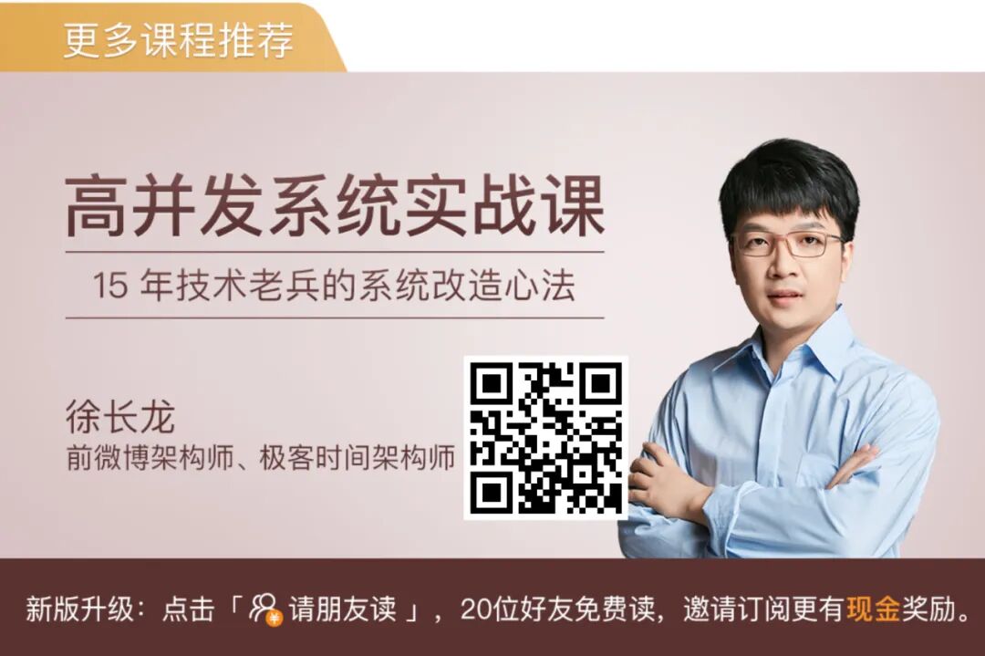 专栏深度拆解了 4 大系统改造方案,30+ 问题解决思路。现有极客五周年特惠活动,老用户 6 折,新用户 5 折,点击阅读原文,或者扫码免费试读👇
