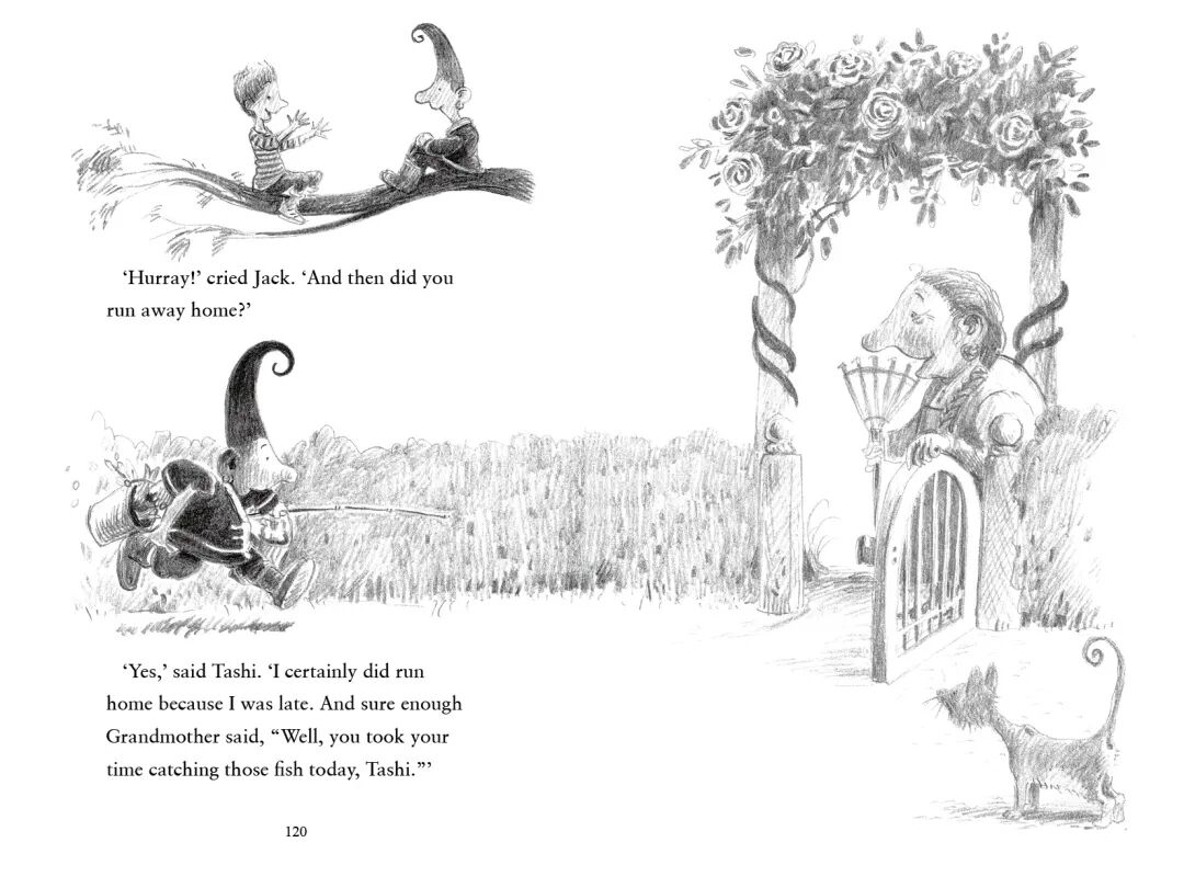 插图作者奇姆·甘博是澳大利亚极受欢迎的童书插图画家,他与安娜的合作非常默契。他塑造的扎西很俏皮,身材小巧,戴着尖顶帽,穿着宝鞋,结合故事里的描述让人觉得扎西本来就是这样子的!