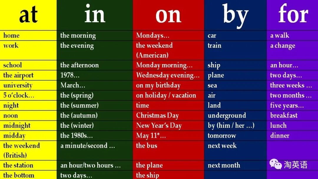 at in on by for常见搭配