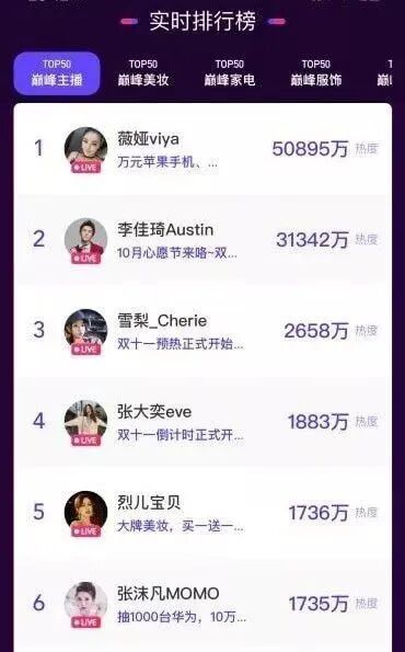 2019年双十一期间薇娅直播间引导成交超过30亿。