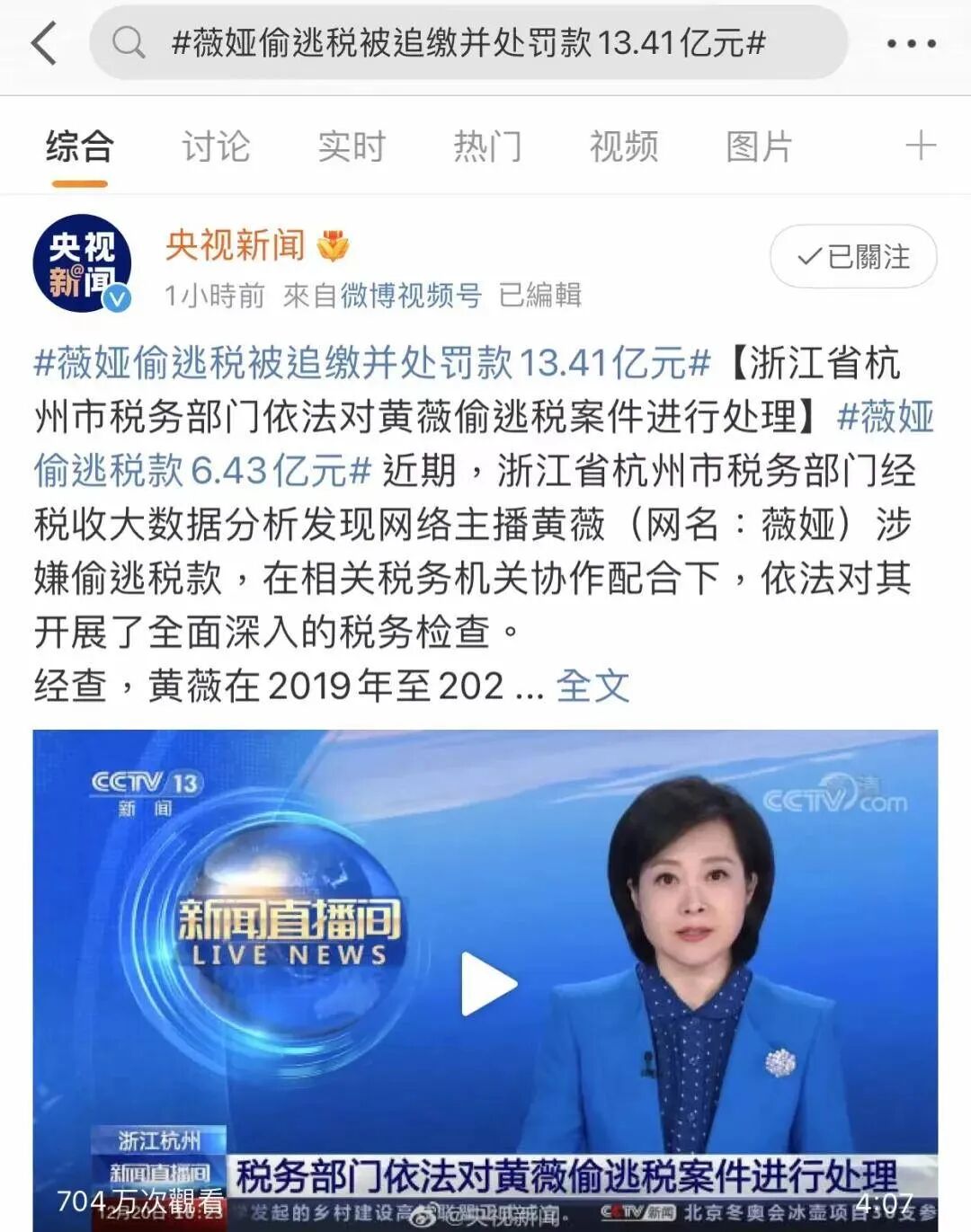 而最后一个出事的,是几乎没有绯闻的劳模主播薇娅,她因为逃税被罚13.41亿而震惊全网。