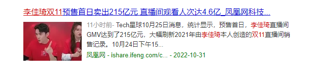 2020年的10月20日,李佳琦、薇娅为预热双十一,也在直播间进行了8小时的带货,两人成交额分别为33亿元人民币和35亿元人民币,累计观看人次则达到1.62亿和1.49亿。