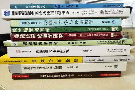 杨源老师多年语篇分析书籍,摞成了厚厚一叠。