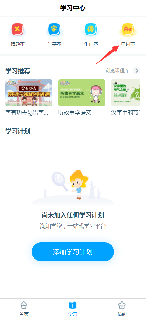 登录淘知学堂首页后,在顶部找到“单词速记”图标,点击进入。