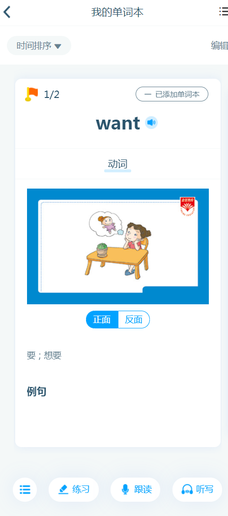 同时可以点底部的“单词本”图标将这个单词加到自己的单词本中。