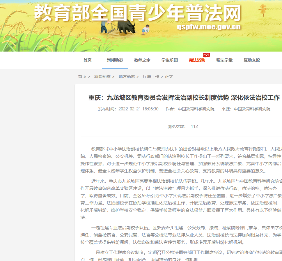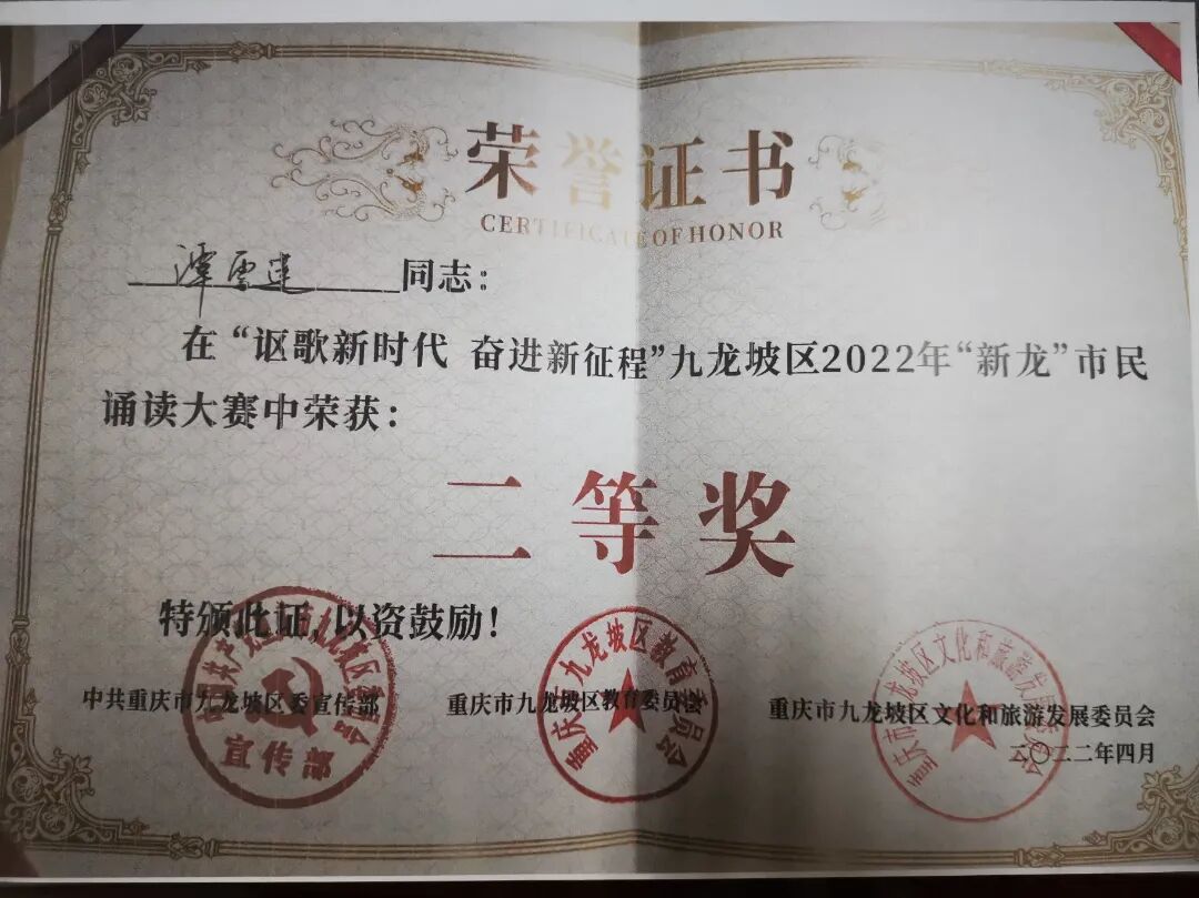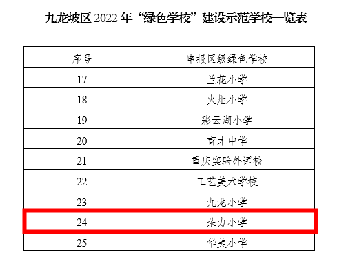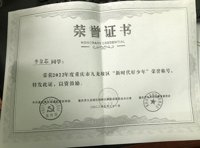 我们成为未成年人思想道德建设十所示范校之一,被评为九龙坡区“文明校园”、九龙坡区2022年“绿色学校示范学校”。