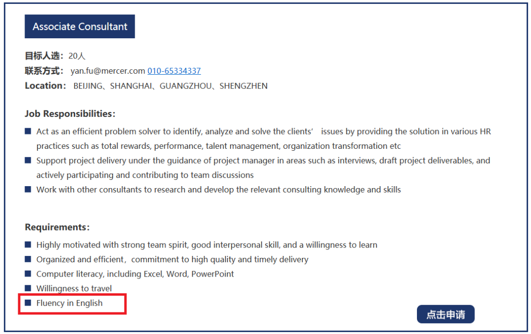 英语是进外企必备的生存技能,外企的招聘信息一般是英文的,就连笔试,面试也几乎是全英文。