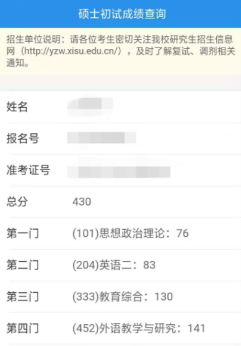 总结了第一次失败的经验,我用了五个月时间付出了更多的努力,终于得到了拟录取的消息,给自己的考研旅程画上了句号。以下是我的成绩情况: