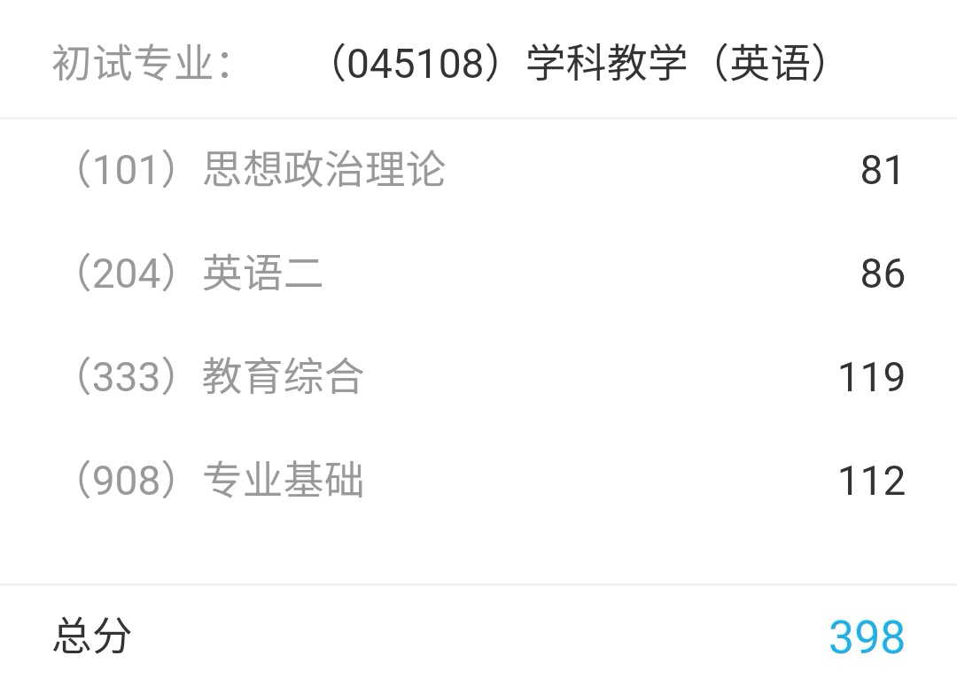 目前就读于西安外国语大学,由于本科英语专业分的很细,只学习了文学和语言学内容,所以对教学法和教育学知识方面的学习可以说是0。关于没有教学法,教育学基础这一点,跨考的英专姐妹不必担心。专四68,大学期间没有参与过英语竞赛类考试,报过一次名,但是没有认真考……本科期间GPA3.8,拿过两次奖学金,一次国奖,一次校奖,已考过高中英语教师资格证。