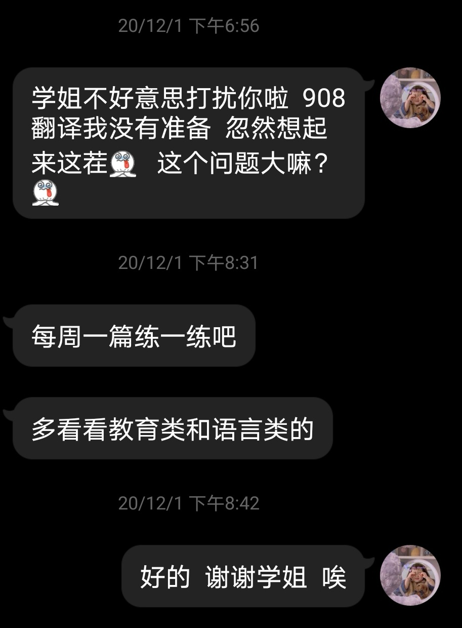 碎碎念: 上面资料里的专八事项我只完成了专八阅读,因为考虑到考专八我就做了阅读,但是近几年的趋势就是初复试不涉及阅读的考察了,所以没用到写作和翻译也是我最后看真题的时候发现的,虽然学姐之前一直给我说要复习专八写作和翻译,甚至给我推荐了翻译的练习资料,我wowowo竟然没有买也没有练习,直到12月我才回过味来。所以大家一定要各个题型都练到★★★
