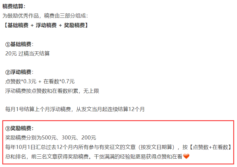 注:之前约定的奖励稿费将于10月1日按时发放