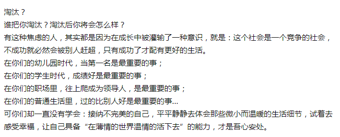 但是那一刻,我突然发现,我好像并没觉得自己有多惨,也并没觉得自己不如别人。