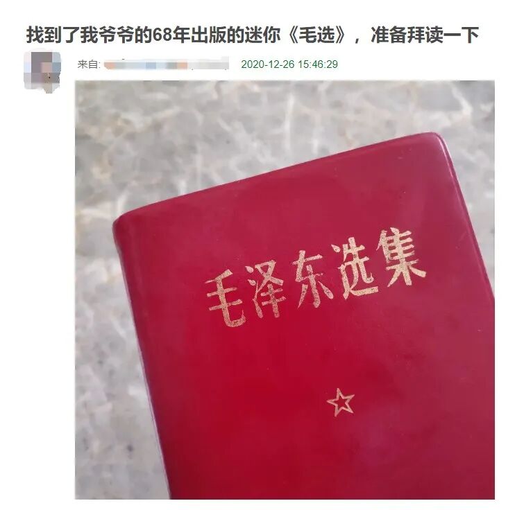 一个很有意思的事情是,许多网友表示自己读的《毛选》是从家里“翻”出来的,可以追溯到父母一辈,甚至是爷爷奶奶当年读过的。