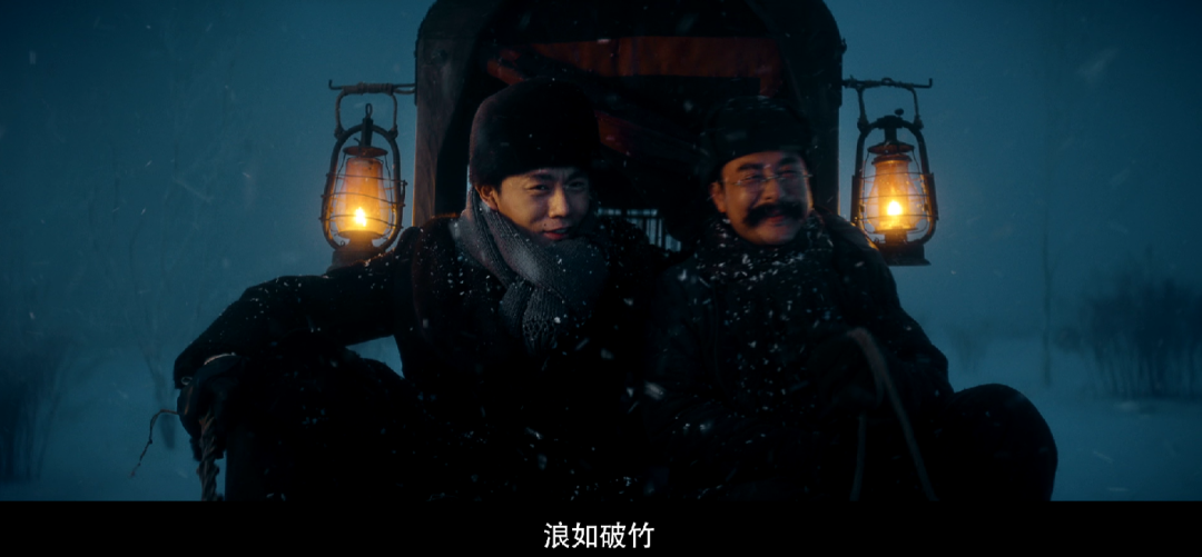 风雪交加的夜晚,一片白茫茫什么也看不清,骡车上晃悠的两盏油灯是唯一的亮色。