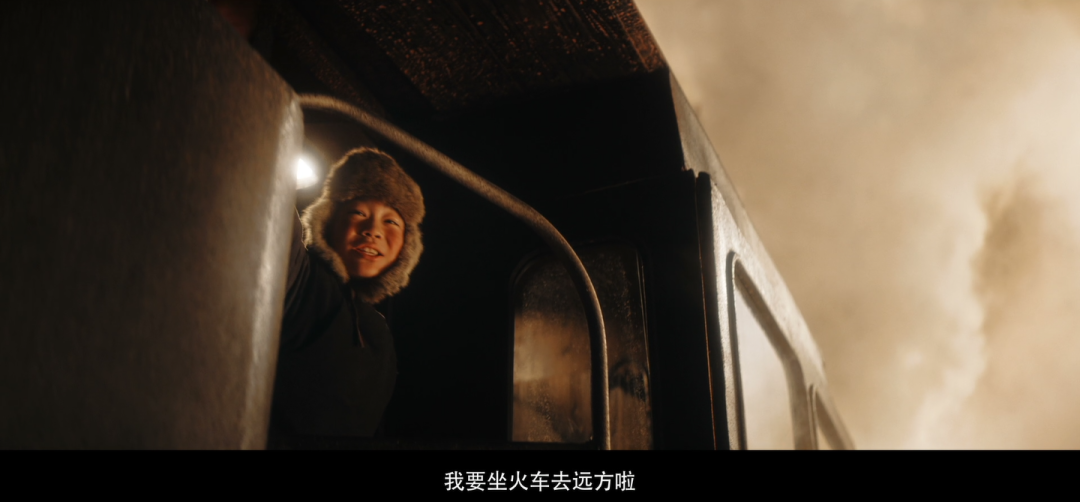 小小的少年冲着车后兴奋地大喊:“别追啦!我要坐火车去远方啦!”