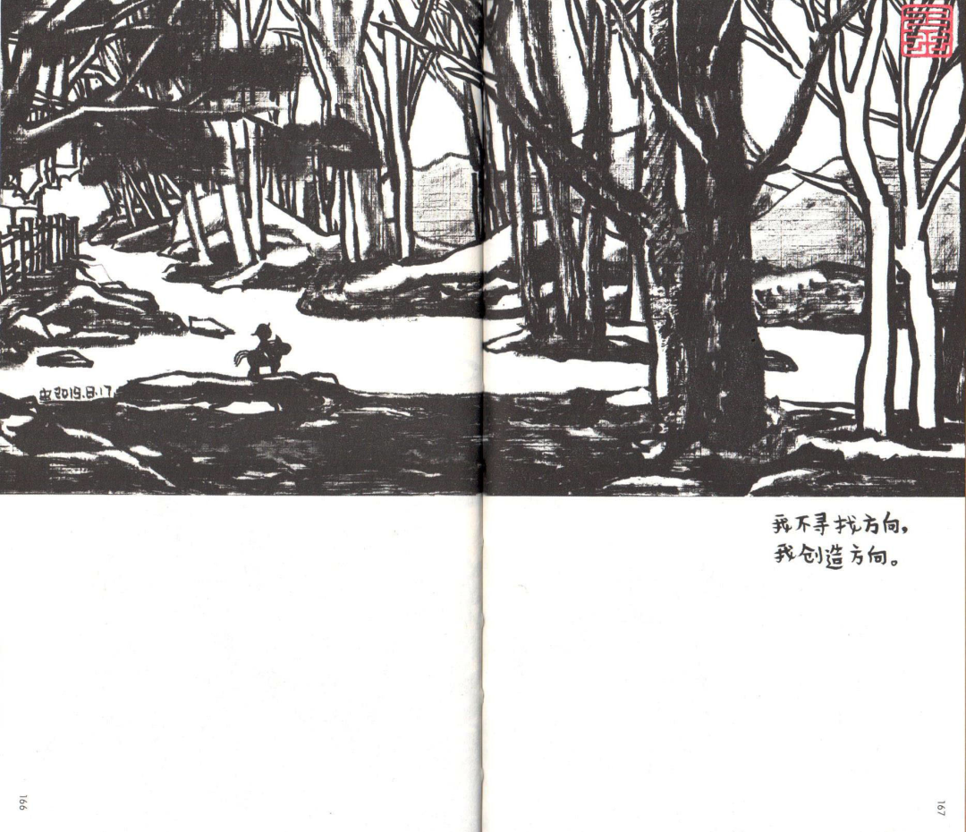 “为什么你记录下的画面很少有颜色呢?仅仅是因为更熟悉某种绘画工具或手法吗?”我问。