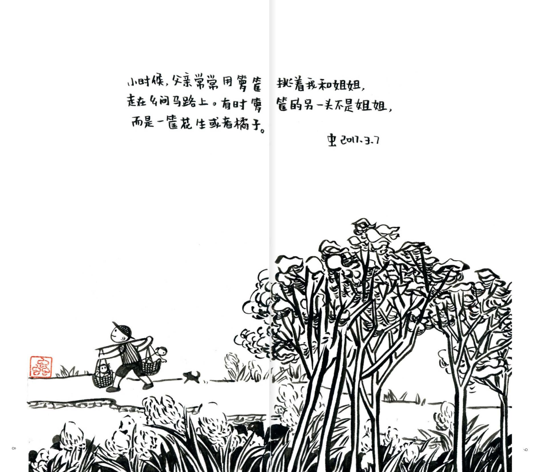 她看见父亲用箩筐挑着自己和姐姐,空气里传来新鲜橘子的味道。