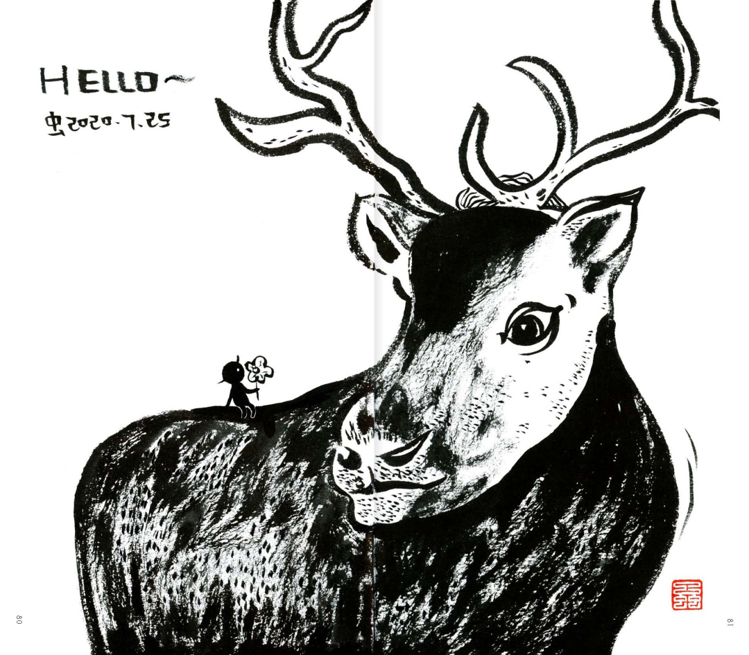 你的第一个感受或想法是什么?过了几秒的第二个念头是什么?十分钟过去,你与鹿的状态是什么?