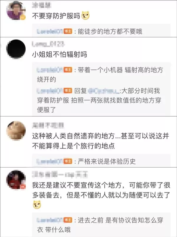 虽然该博主随后表示,自己大部分时间穿着防护服,会找“辐射量数值低的地方”穿便服拍照,但这样没有任何防护措施的照片传播开来会有什么样的后果,谁都无法预料。