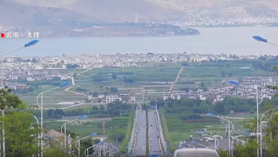 从图中的视角看,在这条路上行驶时,仿佛可以直达苍山洱海,视觉效果极佳。