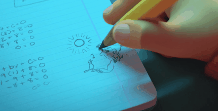 虽然在美美眼里,戴文没有她喜欢的偶像男团成员帅气,但回家做作业的时候,她却不由自主地画起了以自己和戴文为原型的幻想小漫画: