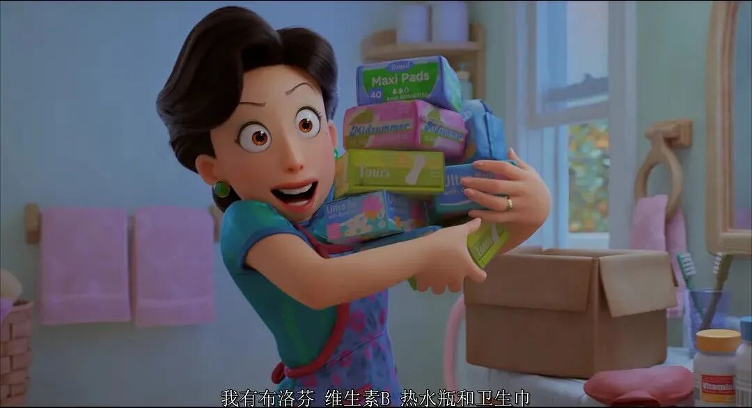 此时,美美惊恐于自己变成了“怪物”,就像女孩第一次生理期来临时的惊恐和无措。