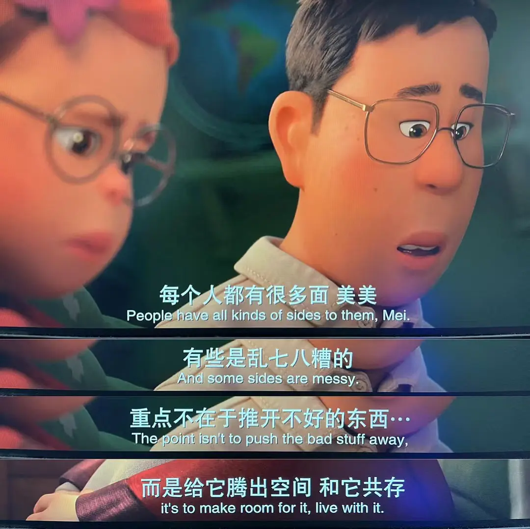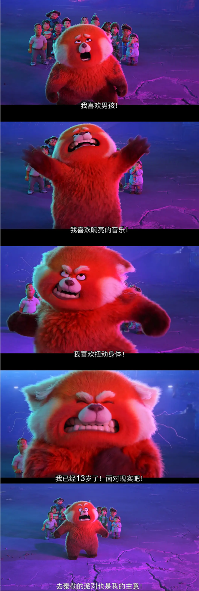 在母亲和宗族其他女性成员看来,长大成人就应该将“不完美”的一面掩藏,做一个循规蹈矩的得体之人,所以她们都选择封印自己体内的小熊猫。
