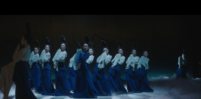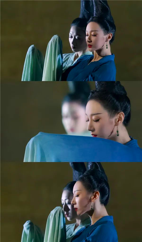 再比如,他们会设定每个演员在舞台上的视线方向,会给每一个舞蹈动作安排好所示意向,甚至会给它们起好名字,比如“静待”“望月”“落云”“垂思”“独步”“险峰”“卧石”,连头发都是特意设计的“青峰髻”,每天需要用两三个小时来打理……
