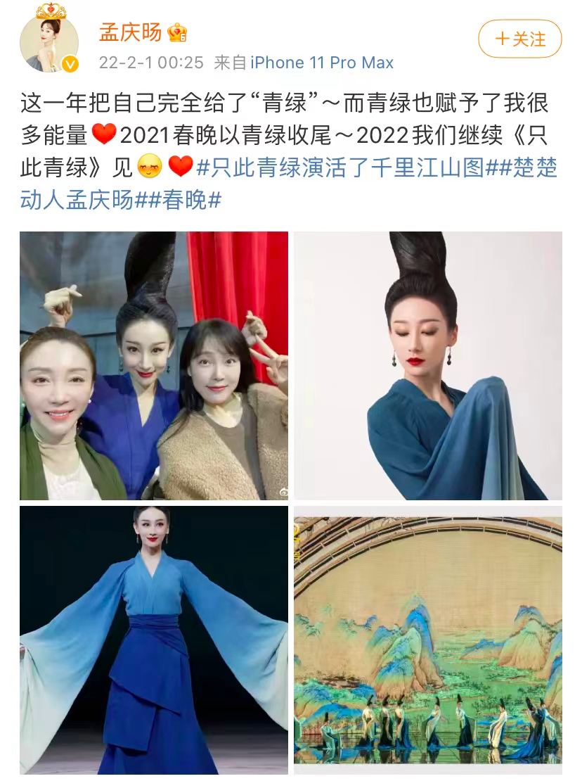 也是因为“青绿”,该选段的领舞孟庆旸受到了大家罕有的关注。
