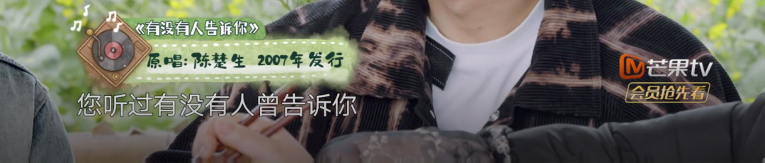 当大家cue陈楚生唱原创的成名曲《有没有人告诉你》,陈楚生很干脆地拒绝。这些人没继续相劝,也不帮着找说辞,倒是一个个模仿起了陈楚生的唱腔。