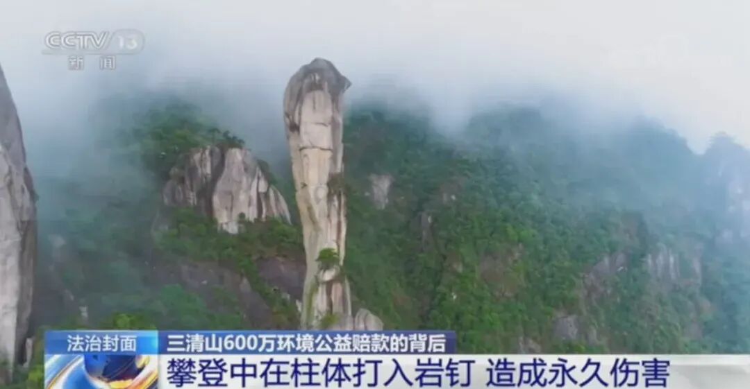 2017年4月,3名驴友为攀爬江西三清山巨蟒峰,在山体内打入26根岩钉,对巨蟒峰造成永久性损害。