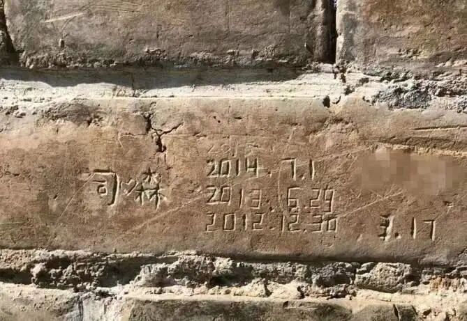 北京天坛公园的一块墙砖,连续三年被同一对情侣刻字