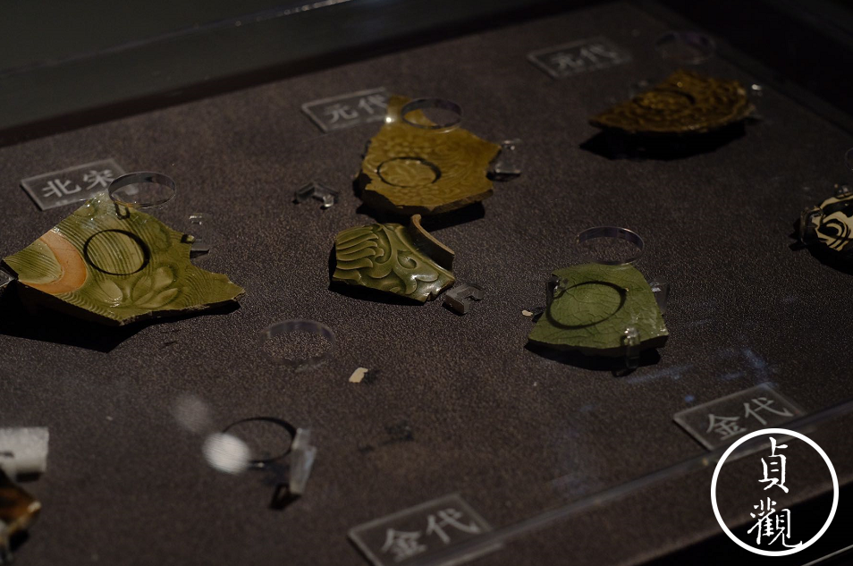 将不同朝代的瓷片牢牢固定好(强调一下,很牢固),摆放在开有孔洞的玻璃罩内,供大家触摸。