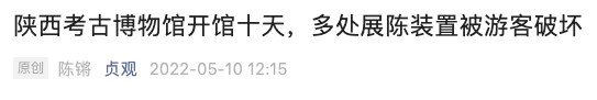 《陕西考古博物馆开馆十天,多处展陈装置被游客破坏》,微信公众号“贞观”