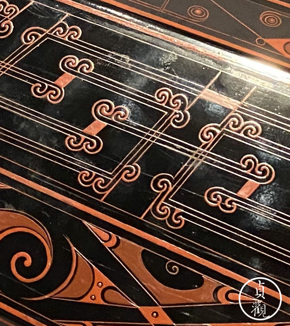 西汉彩绘漆箱复原品,精美的图案上,是被触摸后产生的指纹印。
