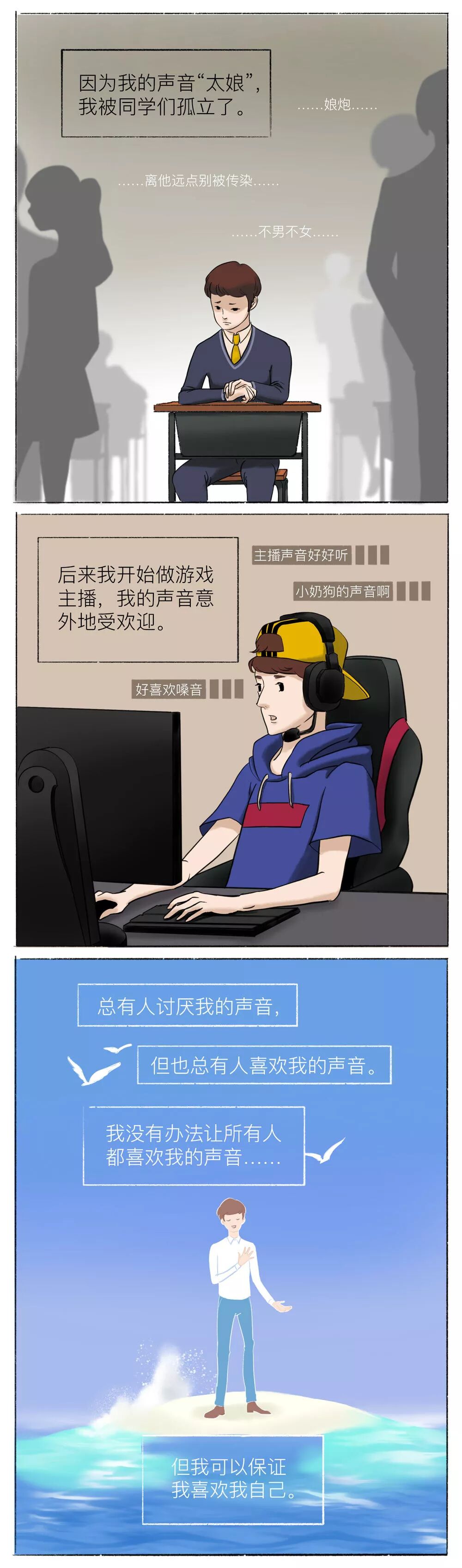 有人爱你柔美的眼睛,有人爱你温暖的声线,有人爱你的美貌,我们却要爱完整的、全部的自己,爱自己的每一点。